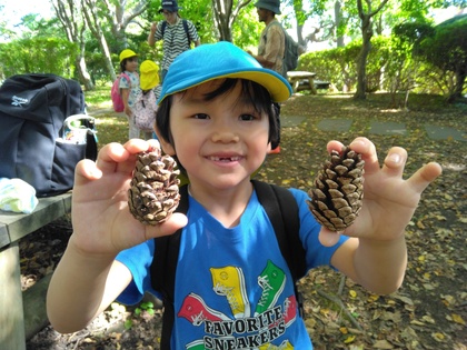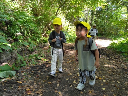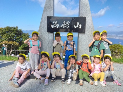 秋の自然に触れたり、「さんぽ」の歌をうたいながらみんなで頂上を目指しました!
