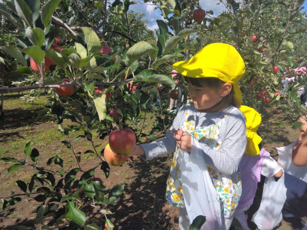 9月19日に、りんご狩り遠足に行ってきました。真っ赤で美味しそうなりんごを選んで、嬉しそうに採っていましたよ。