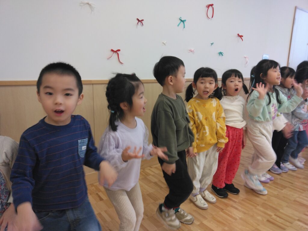 お菓子探しを終え、サンタさんに感謝の気持ちを込めて歌をうたっていると・・「シャンシャンシャン・・♬」