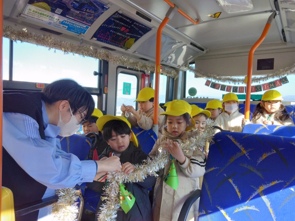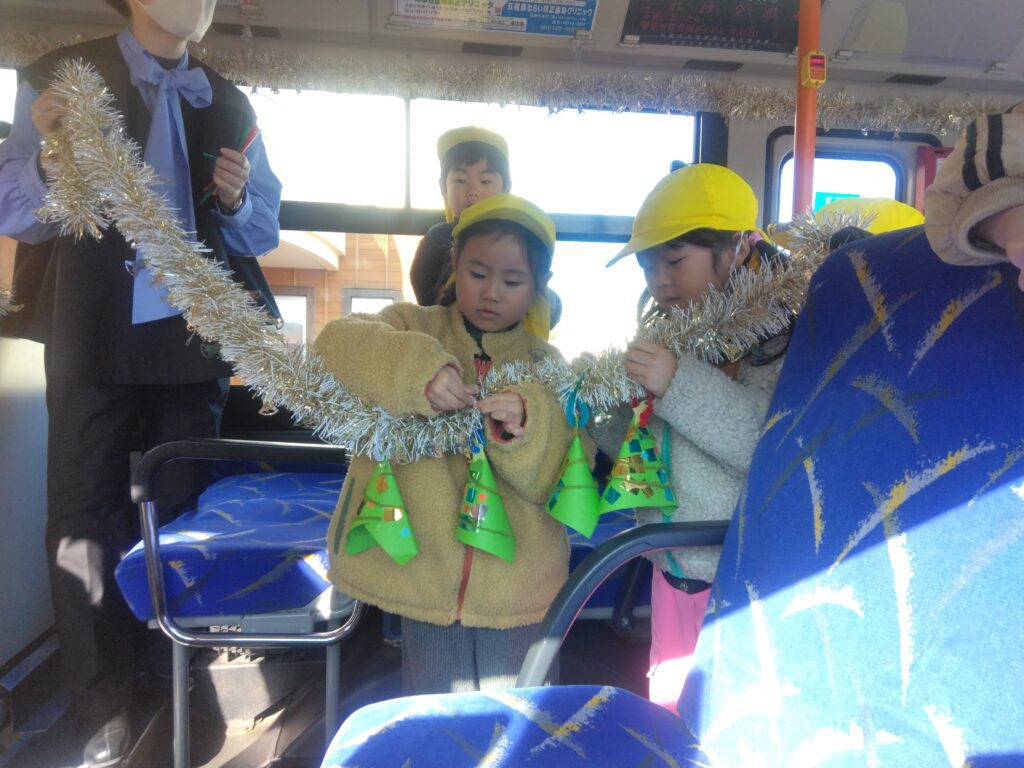 クリスマスにこども園の近くを走るバスにクリスマスラッピングをしました。