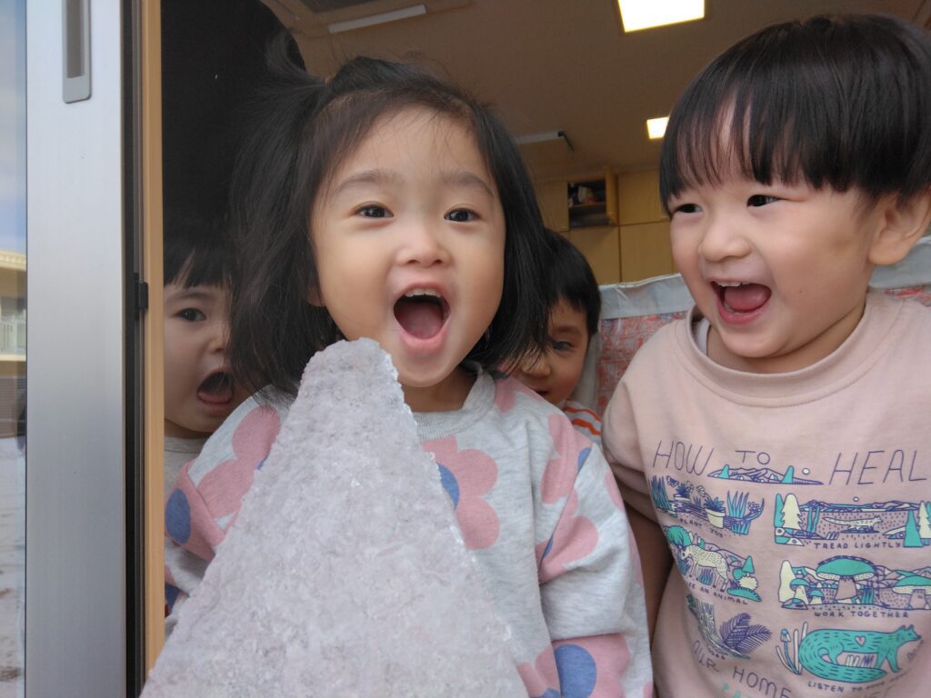ぞうぐみさんが氷をもって来てくれました。